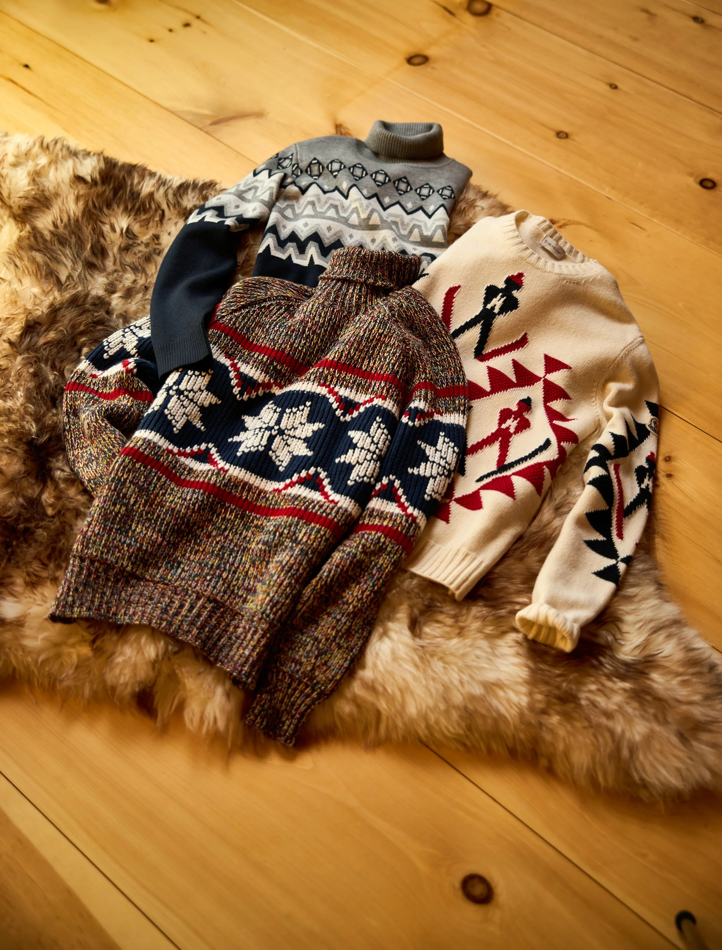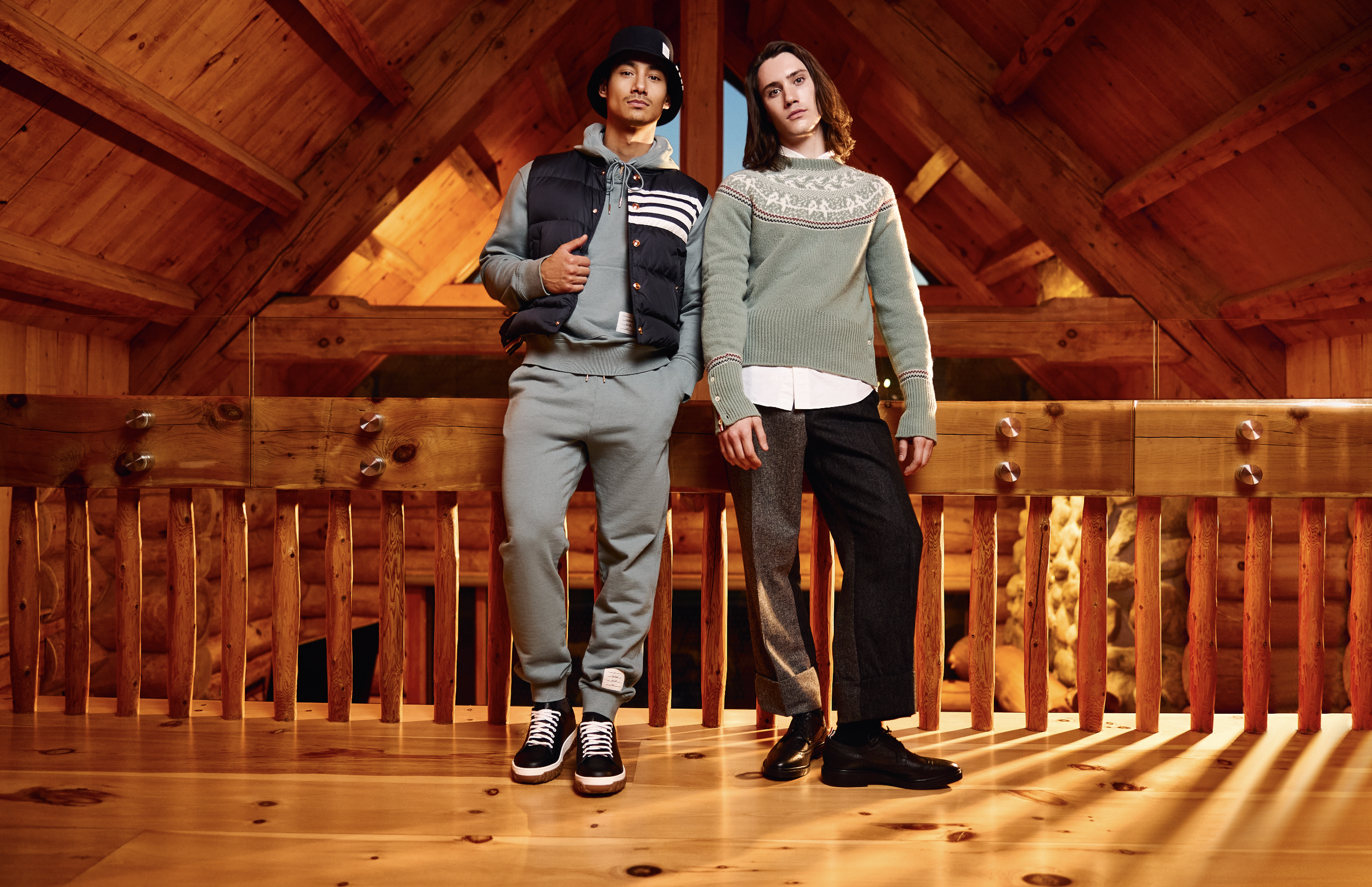 Up in the mountains and encompassed by a grand, traditionally-inspired log cabin, a close circle of friends can escape to relax and find solace from winter’s notoriously cold temps. The well-appointed house is made even more glamorous by a fashion-forward group of friends, who have come prepared with modern styles that contrast the more rustic space. The old-world architectural style of the cabin is offset by the luxurious, carefully crafted clothes on show, breathing new life into the classic ‘Apres Ski’ concept and tying seamlessly into our new Holiday campaign centred around Coming Together.